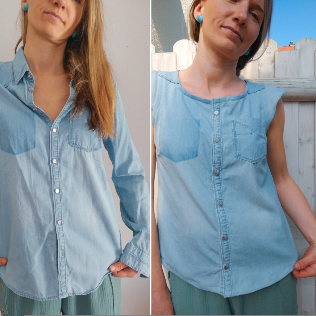 Aus einer alten Jeansbluse, die mir nicht mehr ganz so gut gefallen hat und seit 5 Jahren nur noch im Kleiderschrank lag habe ich mein Top „Astrid“ genäht. Schnittmuster „ASTRID“ eignet sich wunderbar für Upcycling Projekte, den es wird nicht viel Stoff benötigt und ist super schnell genäht. So entstehen aus alten Hemden vom Mann, Opa oder Vater wieder neue Lieblingsstücke im Kleiderschrank. Nachhaltig und zeitlos.