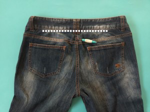 - Ziehen die Hose wieder aus und messe das (weg zunehmende) Maß mit einem Maßband nach.