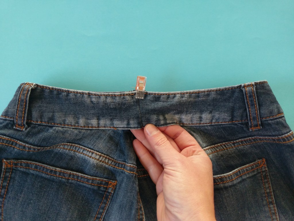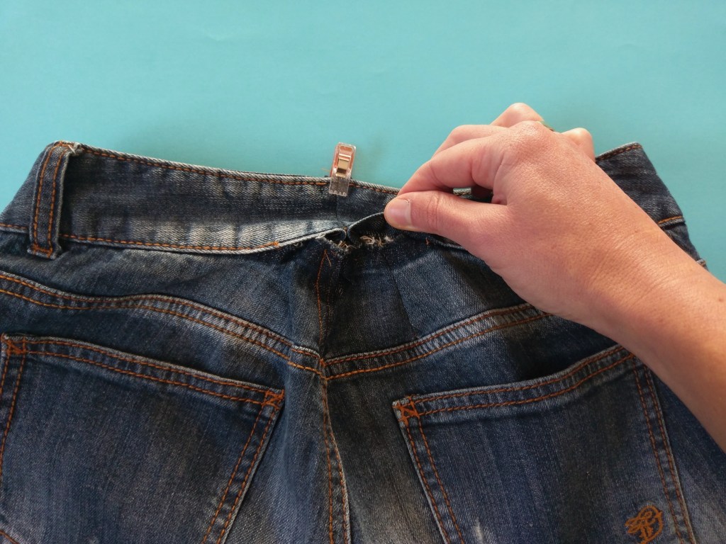 Ich nehme dich Schritt für Schritt mit und zeige dir, wie ich meine Jeanshose am Bund angepasst habe.