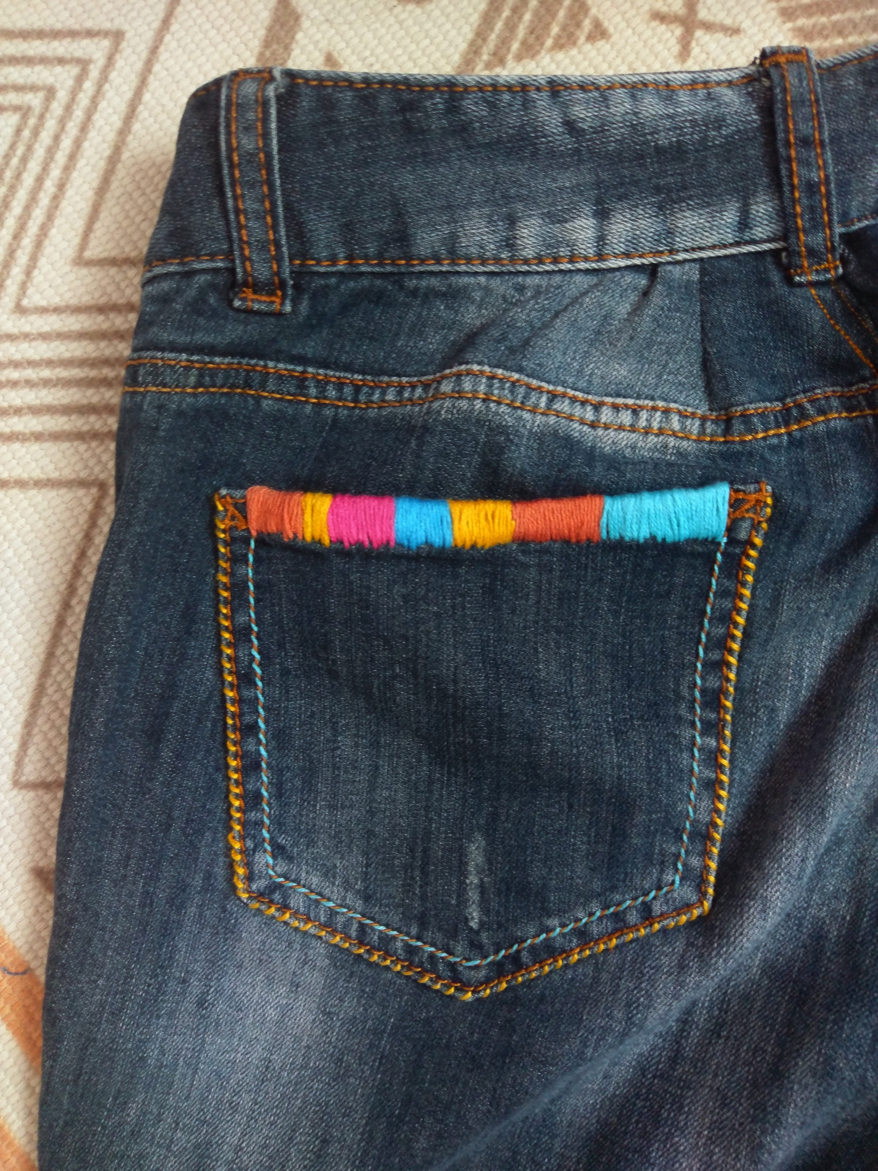 Zum Schluss wird noch die Gürtelschlaufe angenäht und fertig. (Ich habe mich dazu entschieden nur eine Gürtelschlaufe anzunähen, vorher waren es zwei. 🙂 ) Mit ein paar Stickereien habe ich die Hose etwas aufgepeppt. Fertig und kann nun hoffentlich die nächsten Jahre getragen werden.