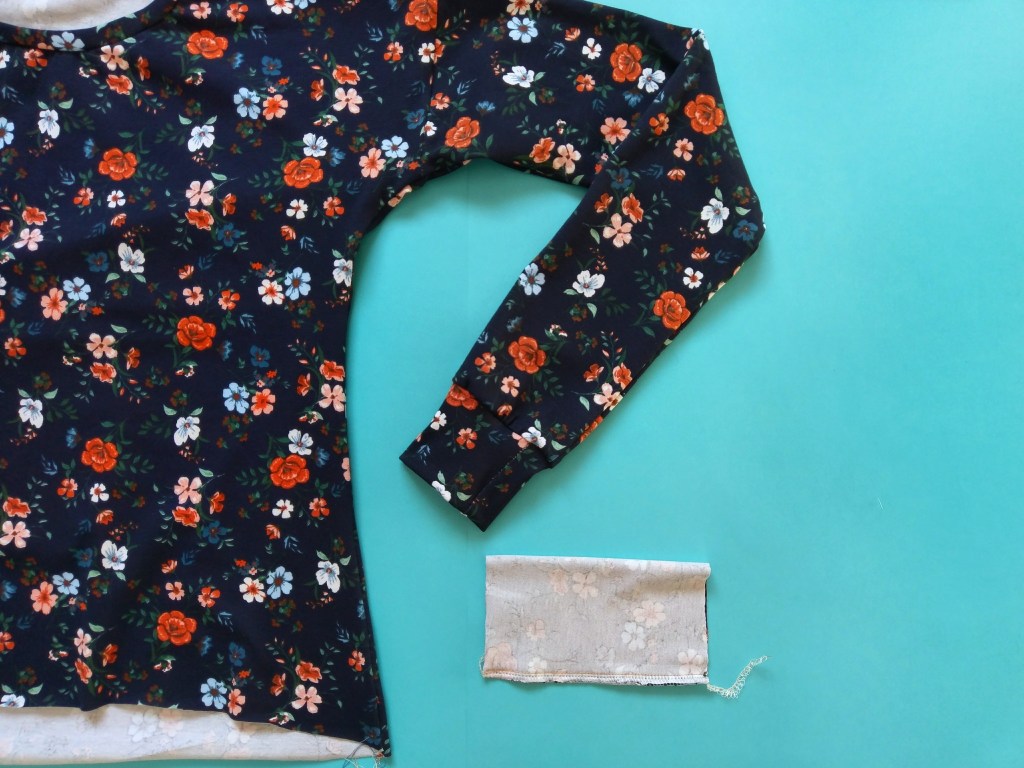 Die Naht vom Bündchen trifft auf eine Seitennaht vom Pullover und zusammennähen.