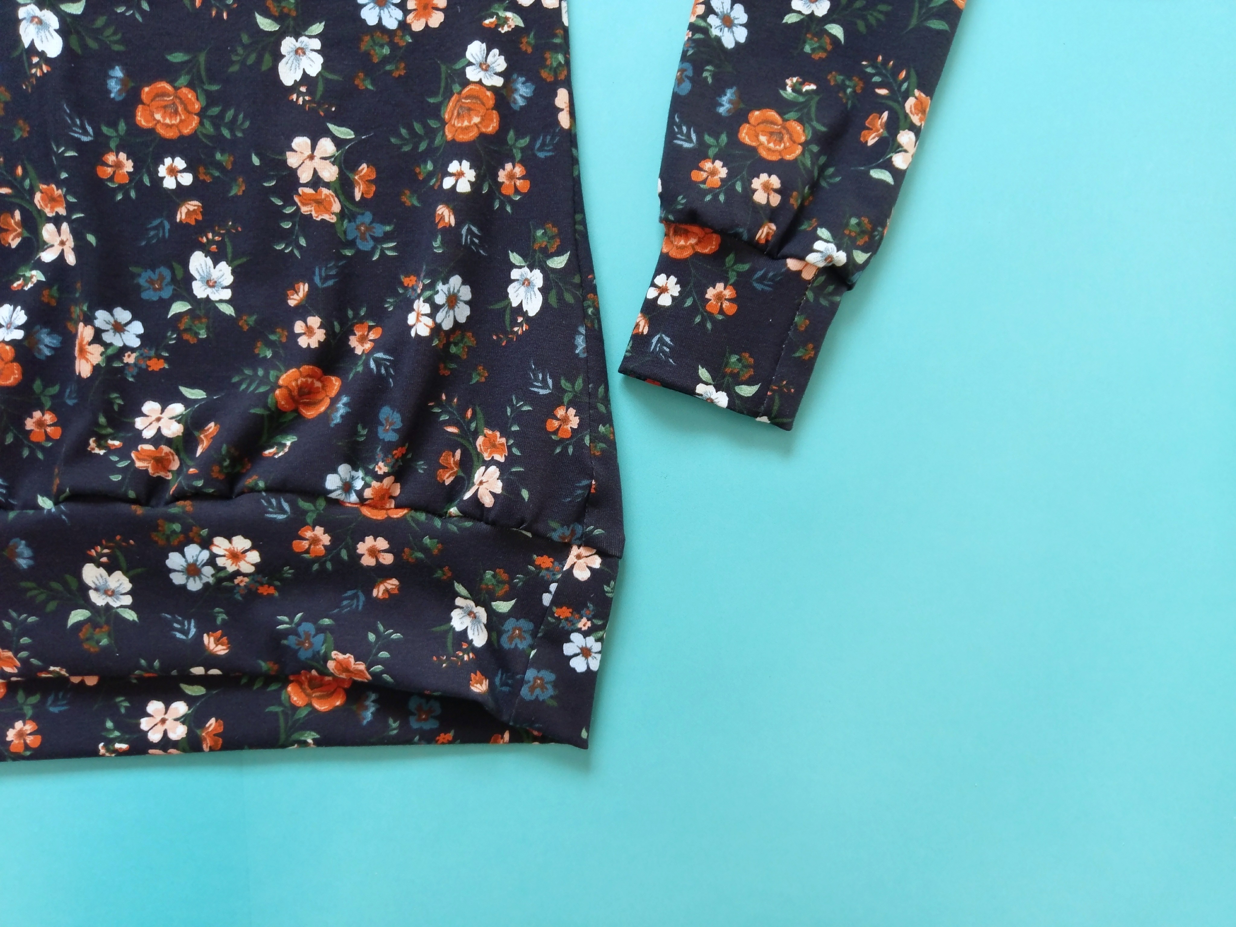 Juhu- Auch wenn ich Leinen über alles Liebe, möchte ich dir mit diesem Blogartikel eine Nähinspiration geben und zeigen wie wandelbar meine Schnittmuster sind. Aus meinem Schnittmuster RAJA habe ich mir ein Jersey Pullover aus Bio- Baumwolle genäht. Den Ärmel, Saum und Halsausschnitt habe ich mit einem Bündchen versäubert. Für eine saubere Optik wird der Halsausschnitt mit einer „Nackenversäuberung“ gearbeitet. Ich nähe meinen Pullover in der Größe 34 und benötige 1,20 Meter Stoff.