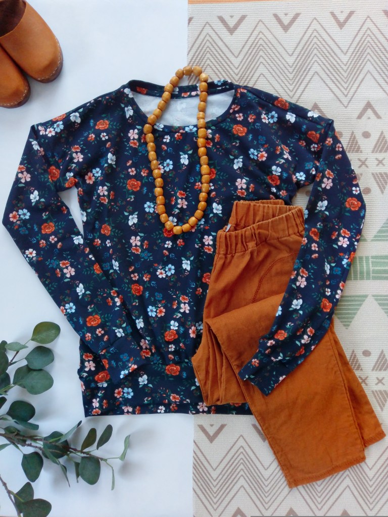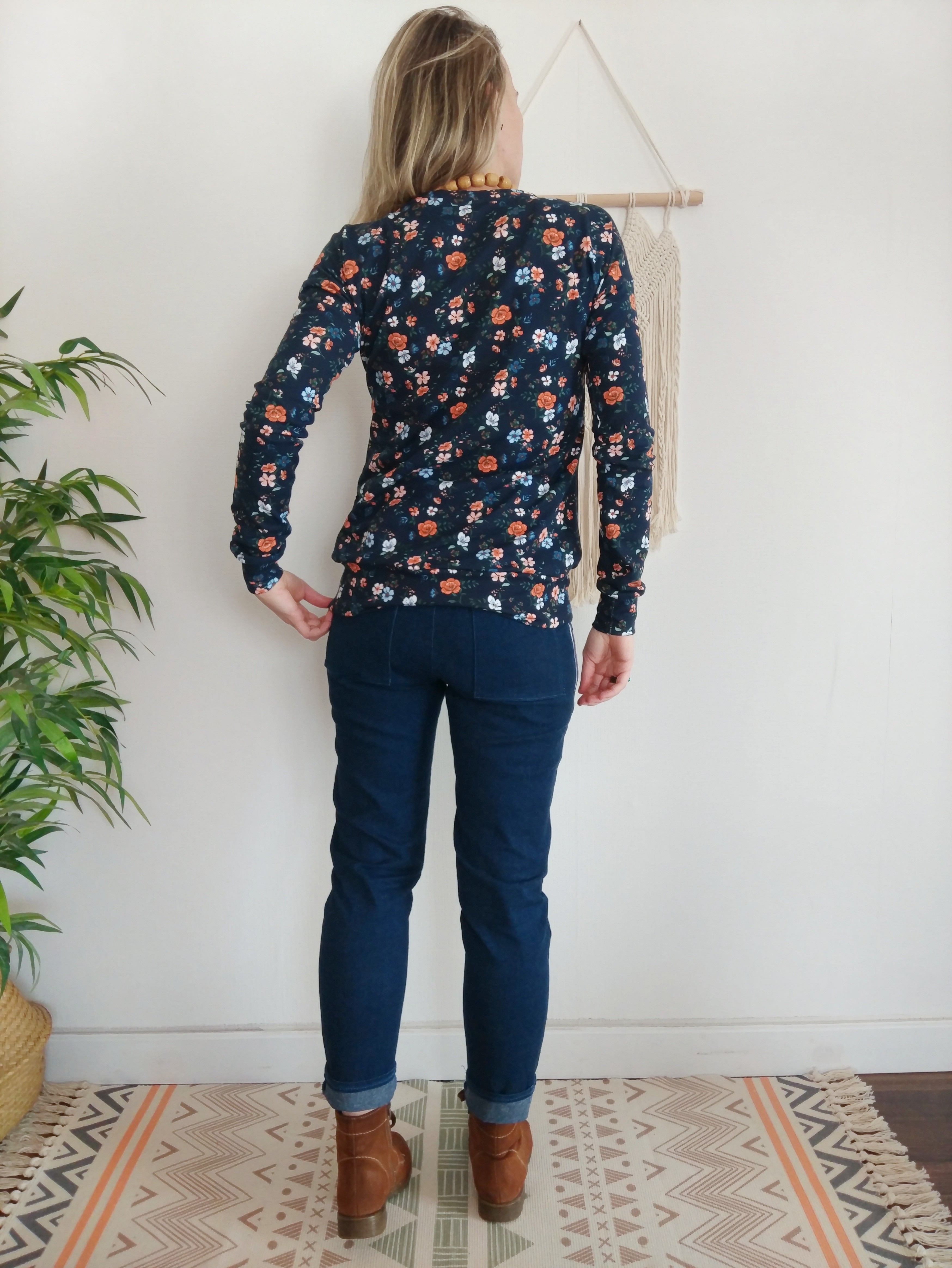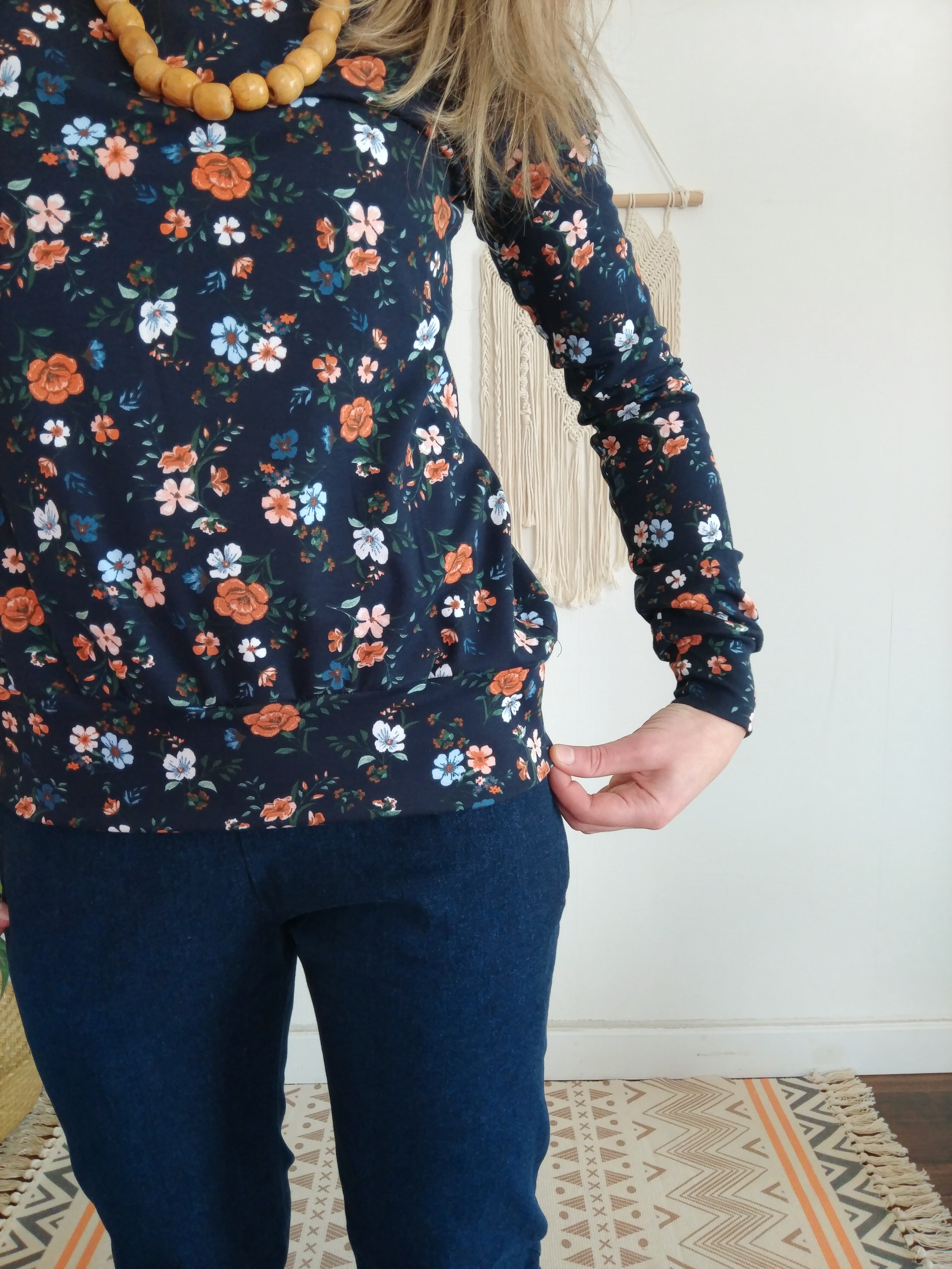 Fertig und wunderschön. Raja aus Jersey ist super schnell genäht und auch für Anfänger leicht zum umsetzten. Die Hose auf den Bildern ist mein Schnittmuster SILJA genäht aus einem Jeansstoff ohne Elasthan.