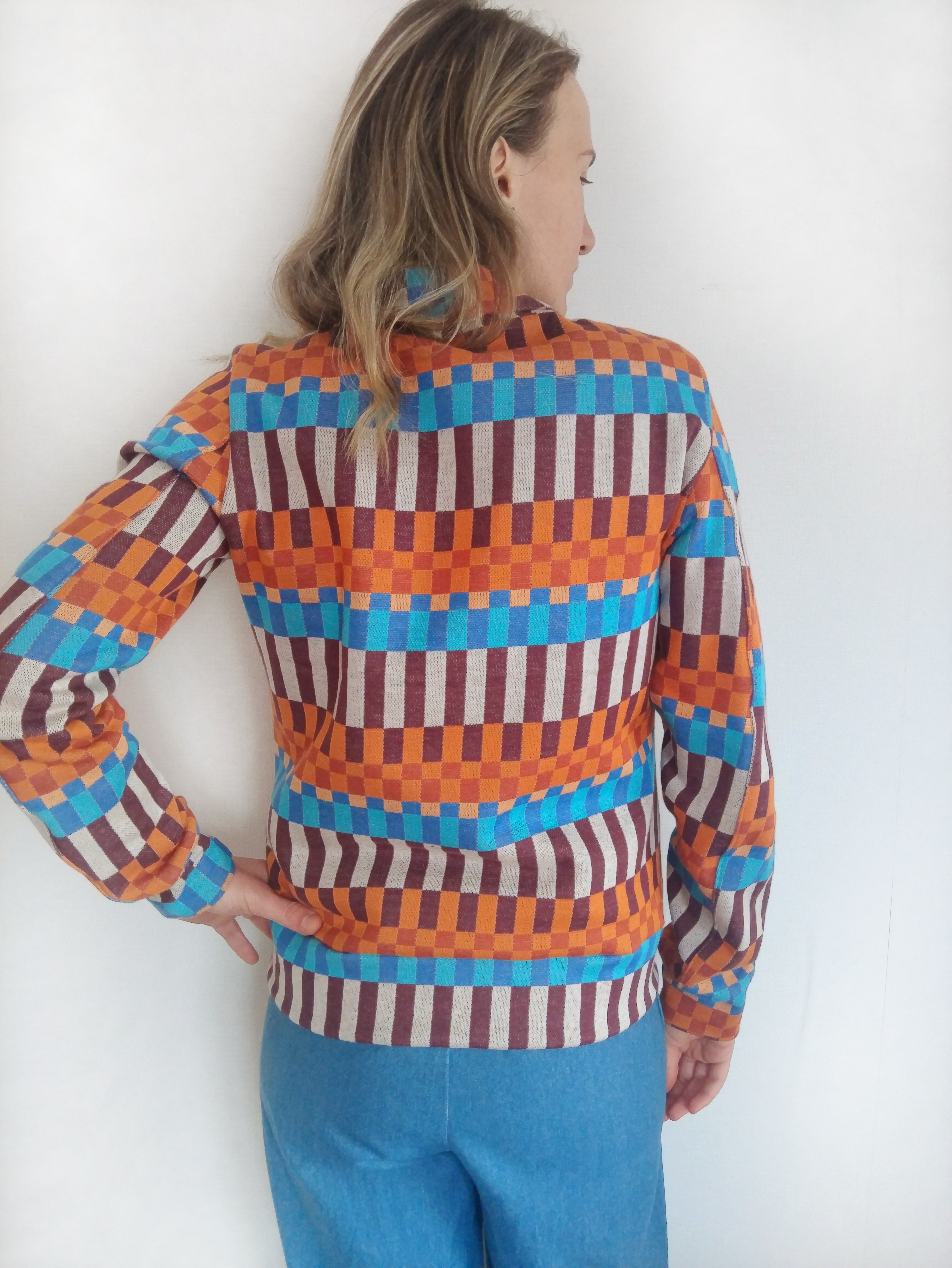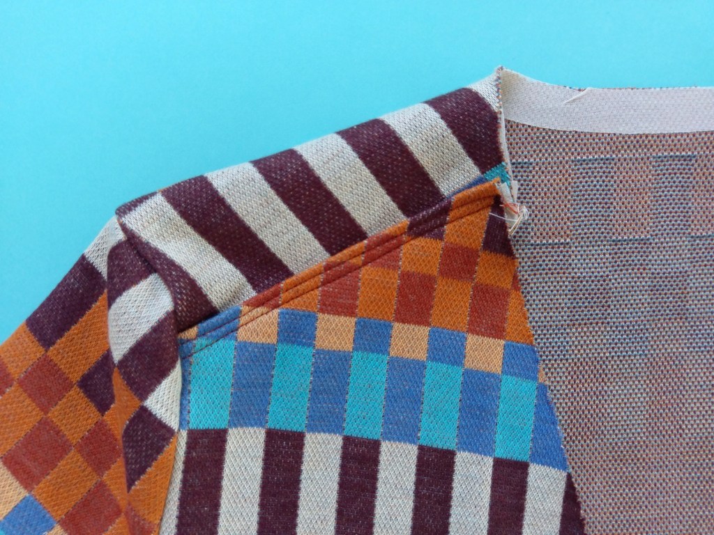 Nähe wie in der Nähanleitung bei KÄTHE beschrieben. Schulternähte schließen mit einer Kappnaht. Ärmel einsetzten.