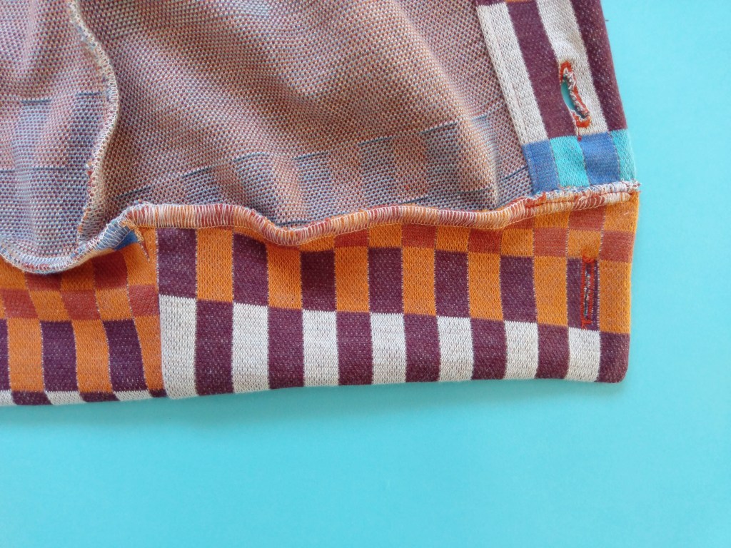 - Versäubern mit einem Zick- Zack Stich und einem elastischen geraden Stich, als zusätzliche Stabilität. Für ein sauberes Stichbild mit der Overlock- Nähmaschine versäubern.