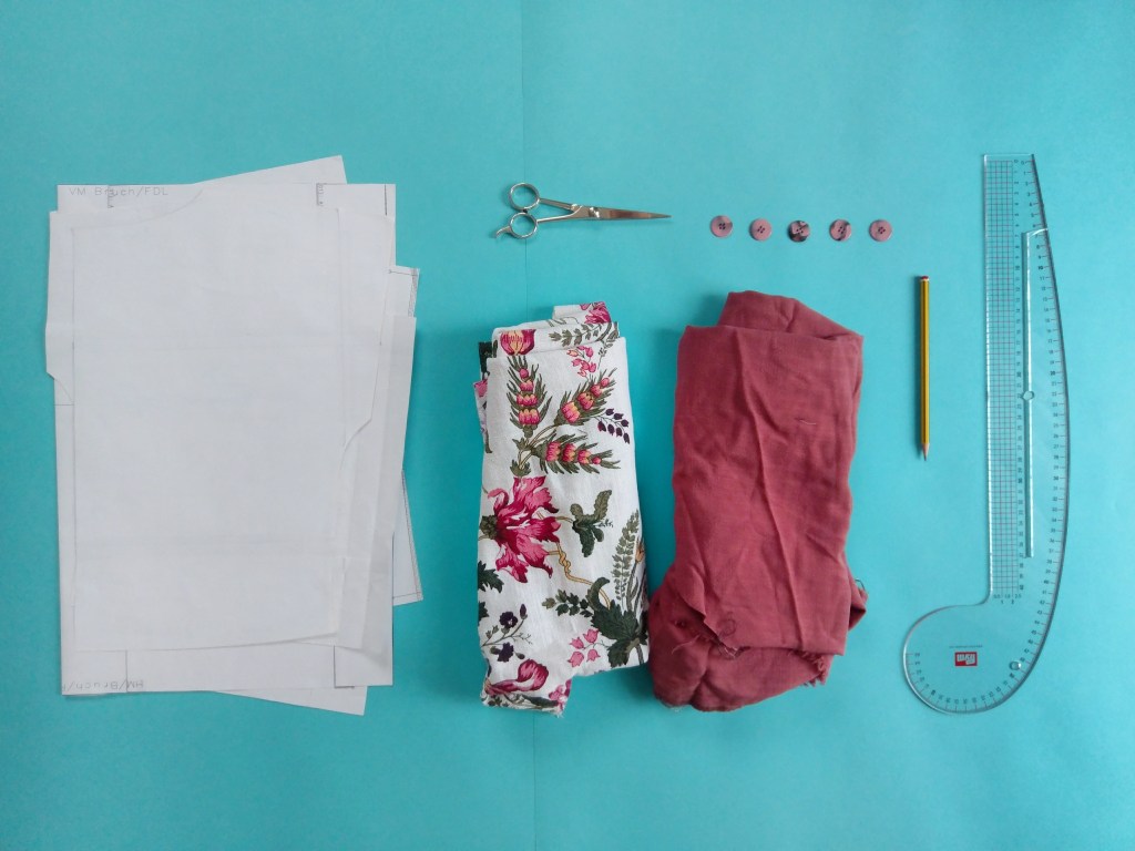 - Wenn du es so nähst wie ich, dann benötigst du 1,40 m breite und 1,0 m hoch. Ich habe meine Bluse aus zwei Reststoffen genäht.