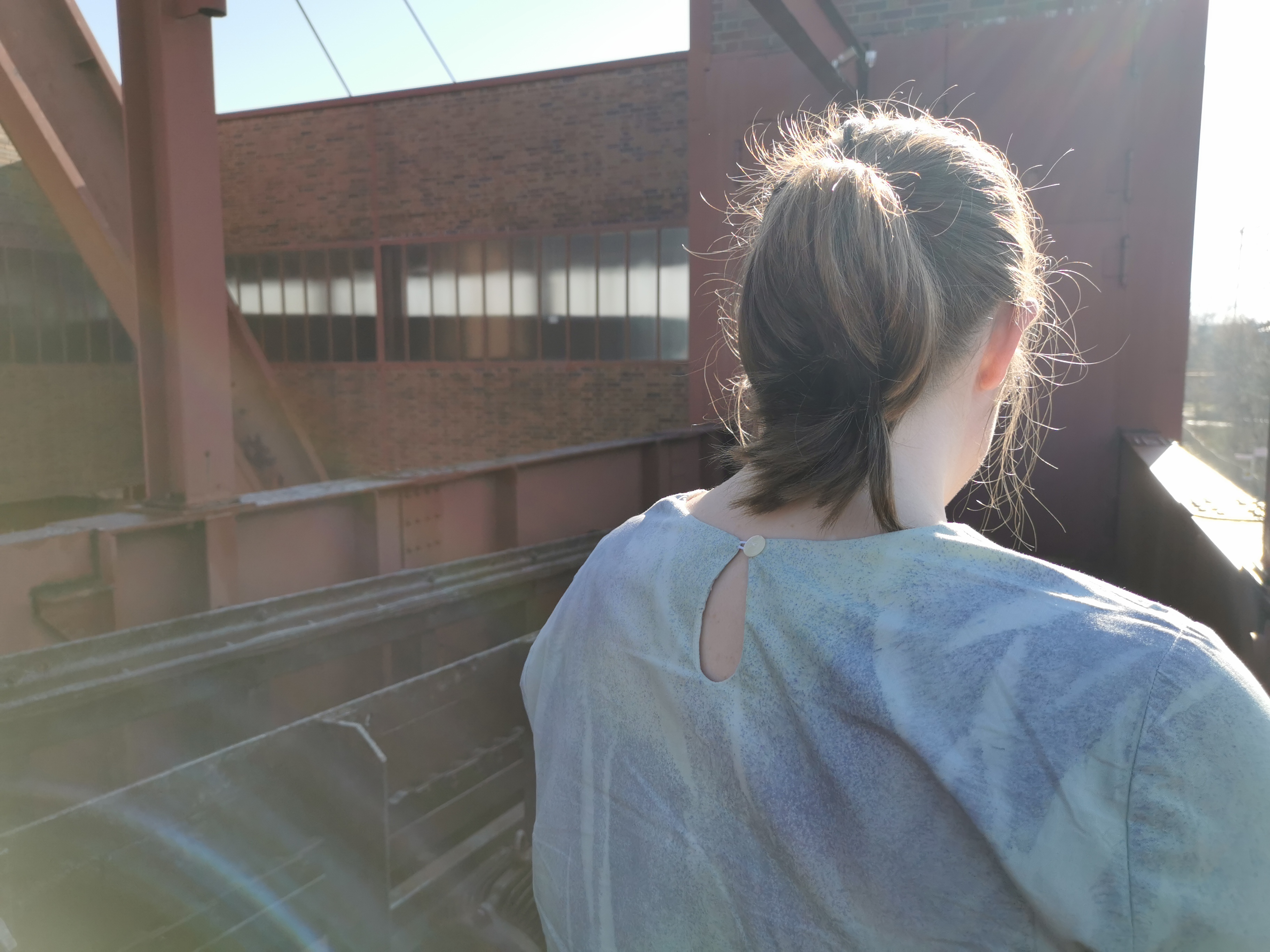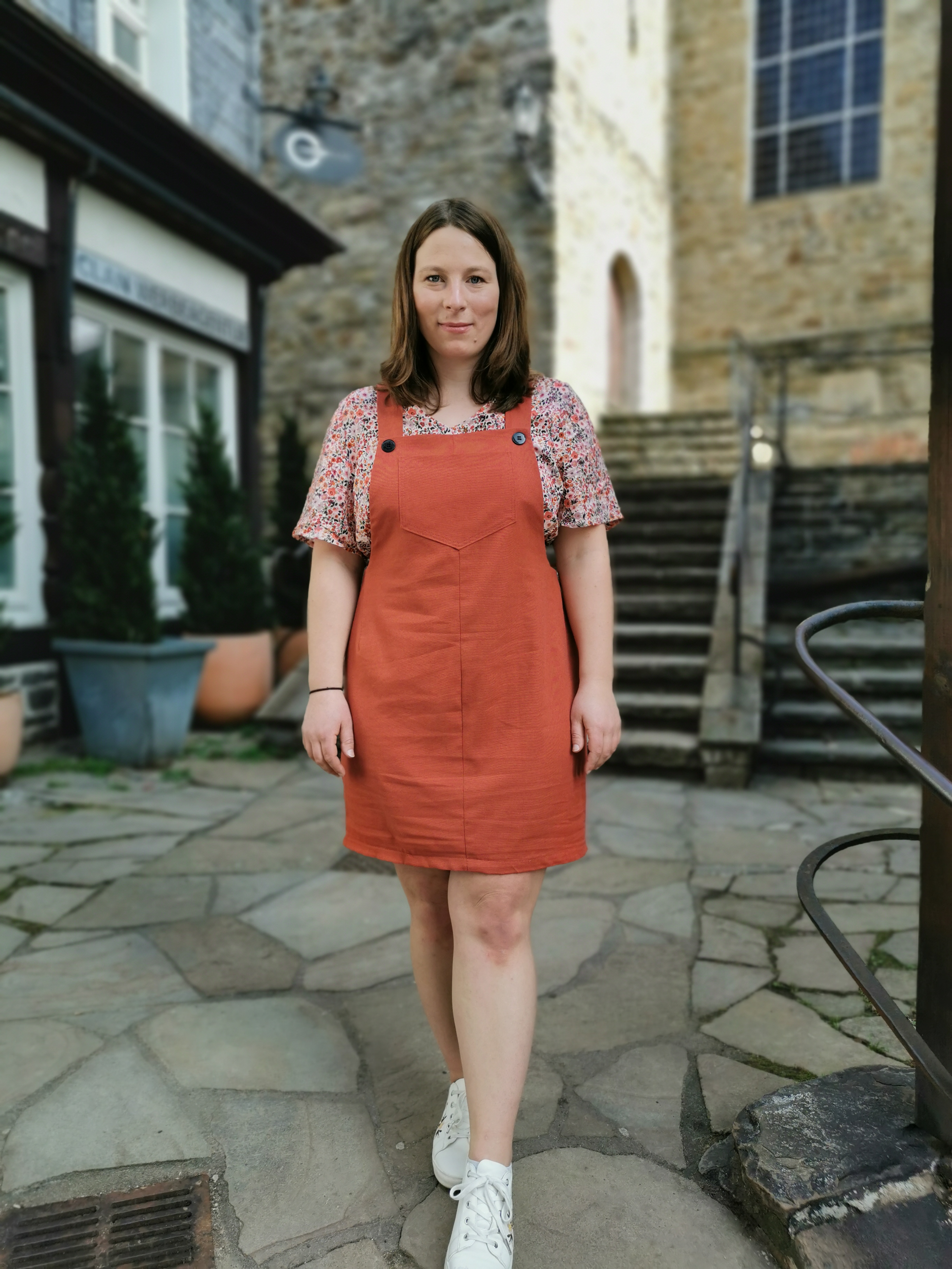 Ich bin Valerie, Studentin, komme ursprünglich aus dem schönen Schwabenland und nun hat es mich nach Essen mitten in den Ruhrpott verschlagen. Ich war schon immer kreativ und habe als Kind meinen Legopuppen von Hand Kleidung aus Filz genäht. Später habe ich dann vor allem gemalt und gezeichnet. Meine Mutter hat mir zu Beginn meines Studiums eine günstige Supermarkt-Nähmaschine gekauft, damit ich zum Hosen- und Vorhangkürzen nicht mehr zu ihr kommen muss. Irgendwann waren dann diese Teddyfellmäntel in, ich habe bei einem Discounter eine Kuscheldecke gesehen und kurzerhand beschlossen, daraus einen Mantel zu nähen. Der sah zwar schrecklich aus, aber das Nähfieber hat er trotzdem in mir geweckt. Tatsächlich nähe ich seitdem kontinuierlich und auch immer noch auf der Maschine von damals. Seit etwa 3 Jahren sitze ich regelmäßig an der Nähmaschine. Kleidung für meine Figur zu nähen und anzupassen, auf aktuelle Trends in größeren Größen umzusetzen ist nun meine Leidenschaft geworden. Auf Instagram nehme ich euch mit, wie sich mein Schrank mehr und mehr mit handgemachten Unikaten füllt. Dabei probiere ich immer wieder Neues aus, vom Sticken über Batiken bis hin zu eigenen Labels.