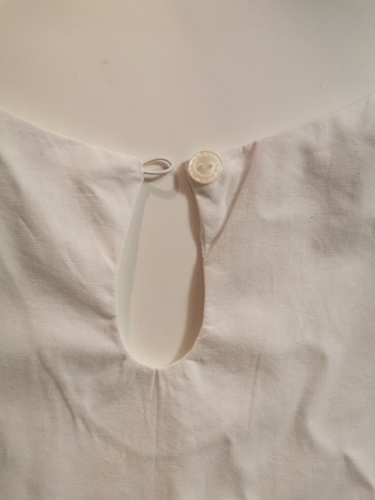 Als aller letzten Schritt muss nun noch der passende Knopf zur Schlaufe am Tropfenausschnitt