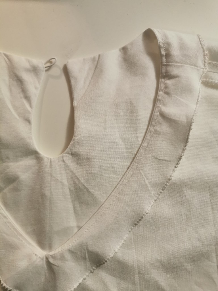 Beleg auch noch im Nahtschatten der Schulternaht festgenäht werden.