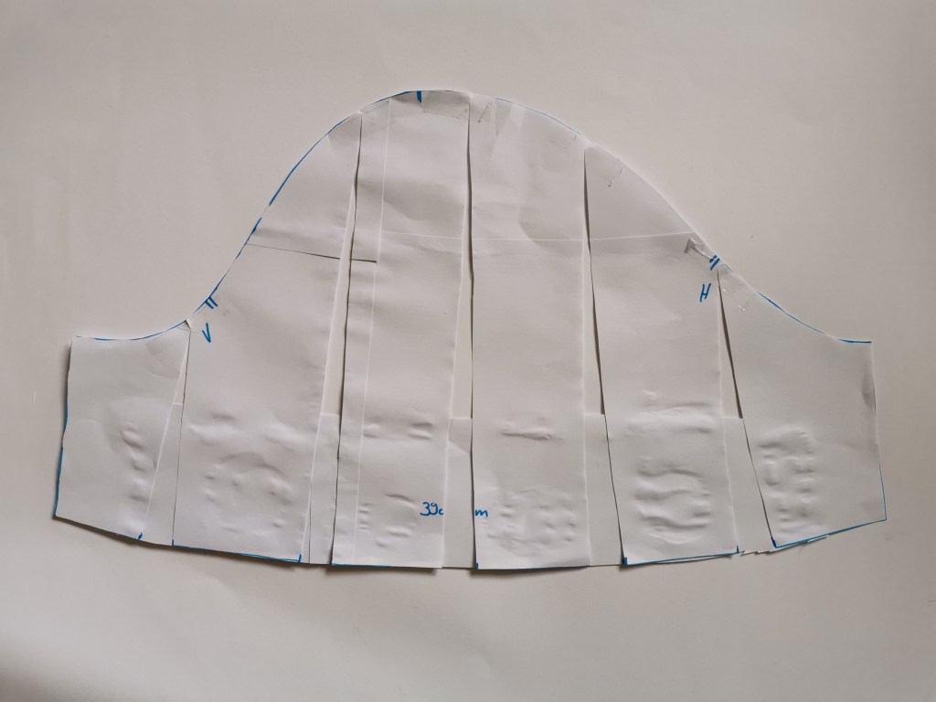 Nun erstelle ich ein neues Schnittmuster für einen kurzen, aufgefächerten Ärmel nach der Nähanleitung von Yvonne die im Schnittmuster enthalten ist. Ich habe zwischen den Einschnitten zwei Zentimeter hinzugefügt. Es hätte aber gerne noch mehr sein können, um den Effekt zu verstärken.