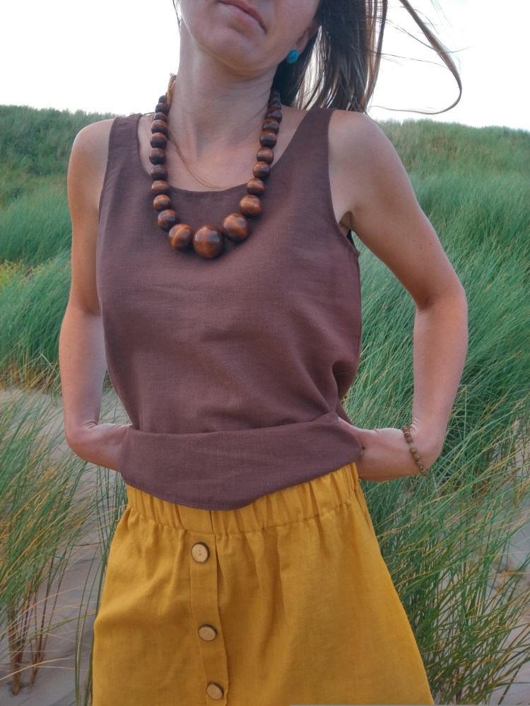Halsausschnitt und Armloch werden mit einem Schrägband versäubert. Du musst kein spezielles Schrägband kaufen, bei Webstoffen kannst du dir sehr einfach dein eigenes Schrägband herstellen. Auch dazu findest du in der Nähanleitung eine Hilfestellung.