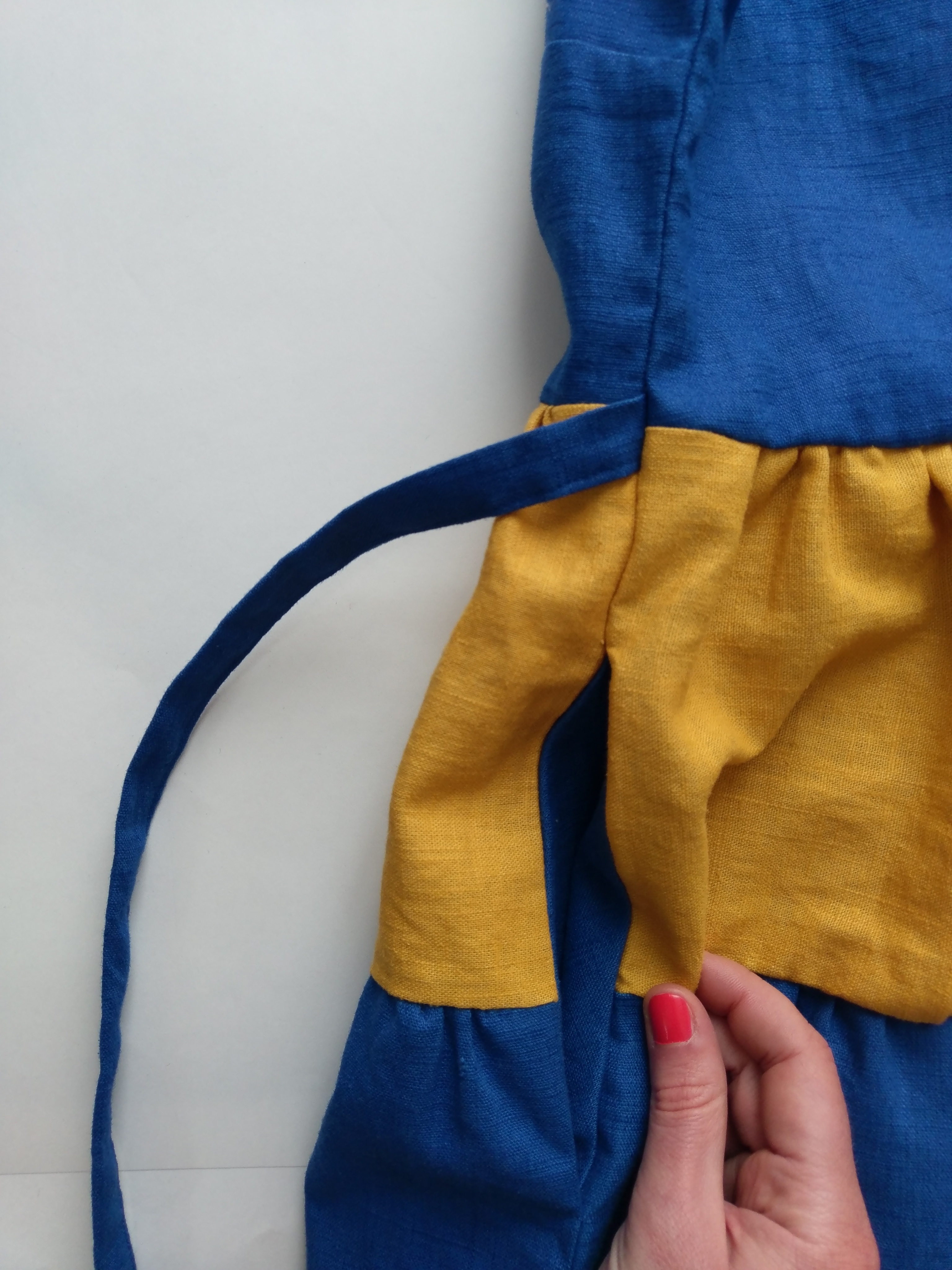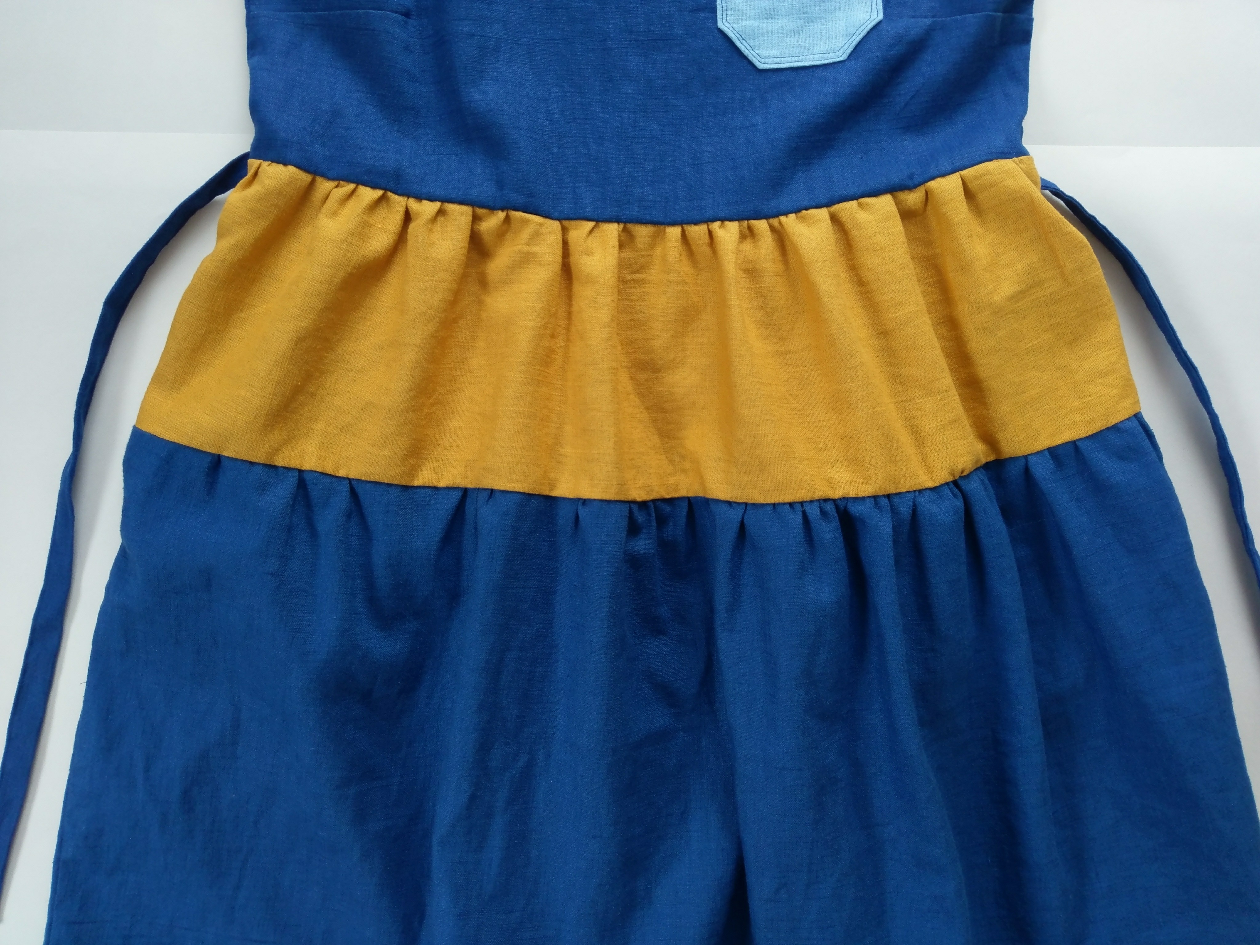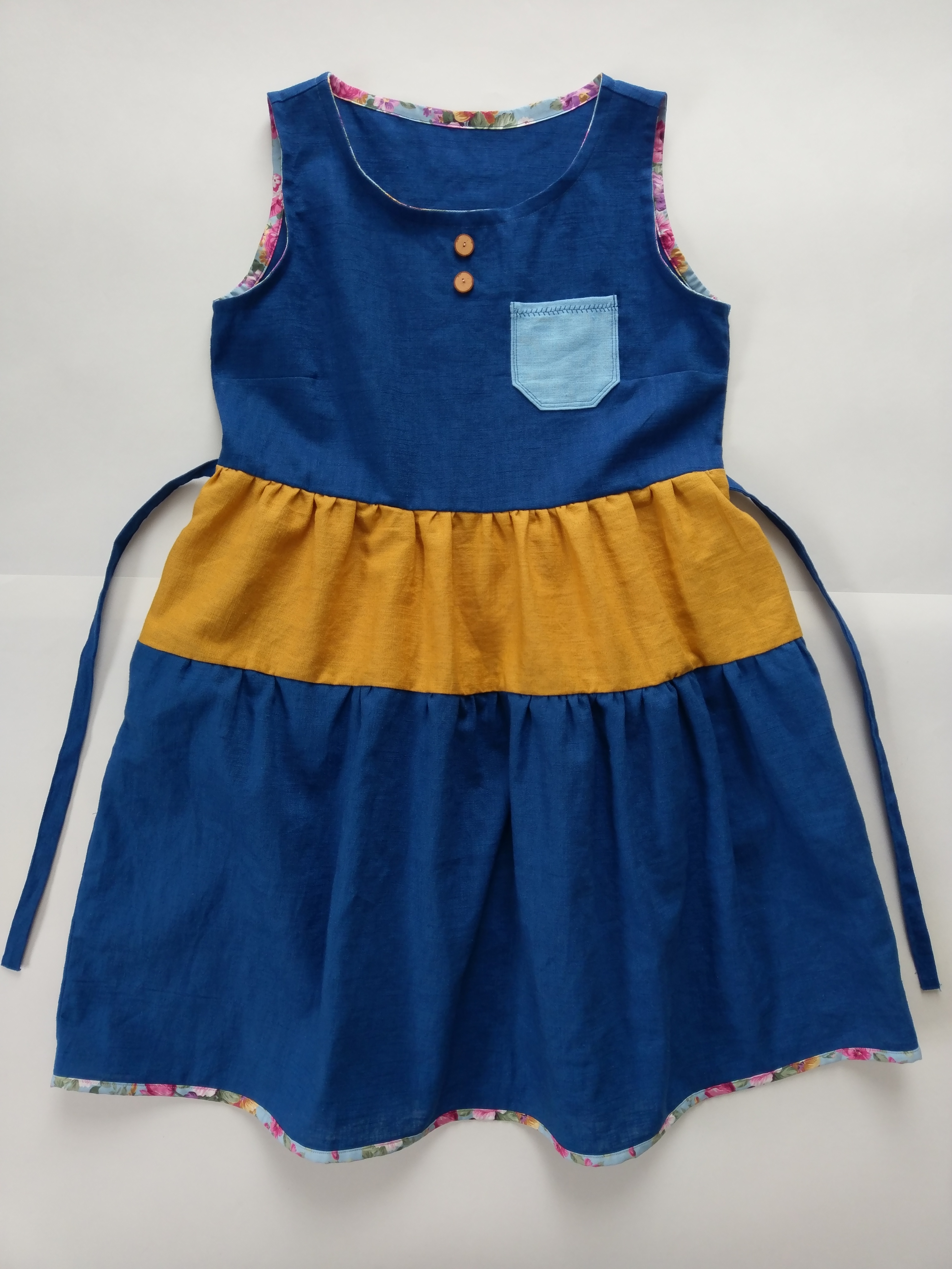 Das Trägerkleid hat aber natürlich noch viel mehr zu bieten. Eine versteckte Nahttasche oder zwei schöne große aufgesetzte Taschen bieten viel Platz für Krimskrams. Der Bindegürtel im Rückenteil passt sich jeder Taille perfekt an, kann auch an die Seitennaht genäht werden oder als breiter Gürtel der vorne zu einer süßen Schleife gebunden wird. Das Oberteil kann mit oder ohne Knopfleiste genäht werden, ebenso findest du in der Nähanleitung ganz viel Nähinspirationen wie du dir das Oberteil anpassen kannst. Es warten Kapitel auf dich wie;