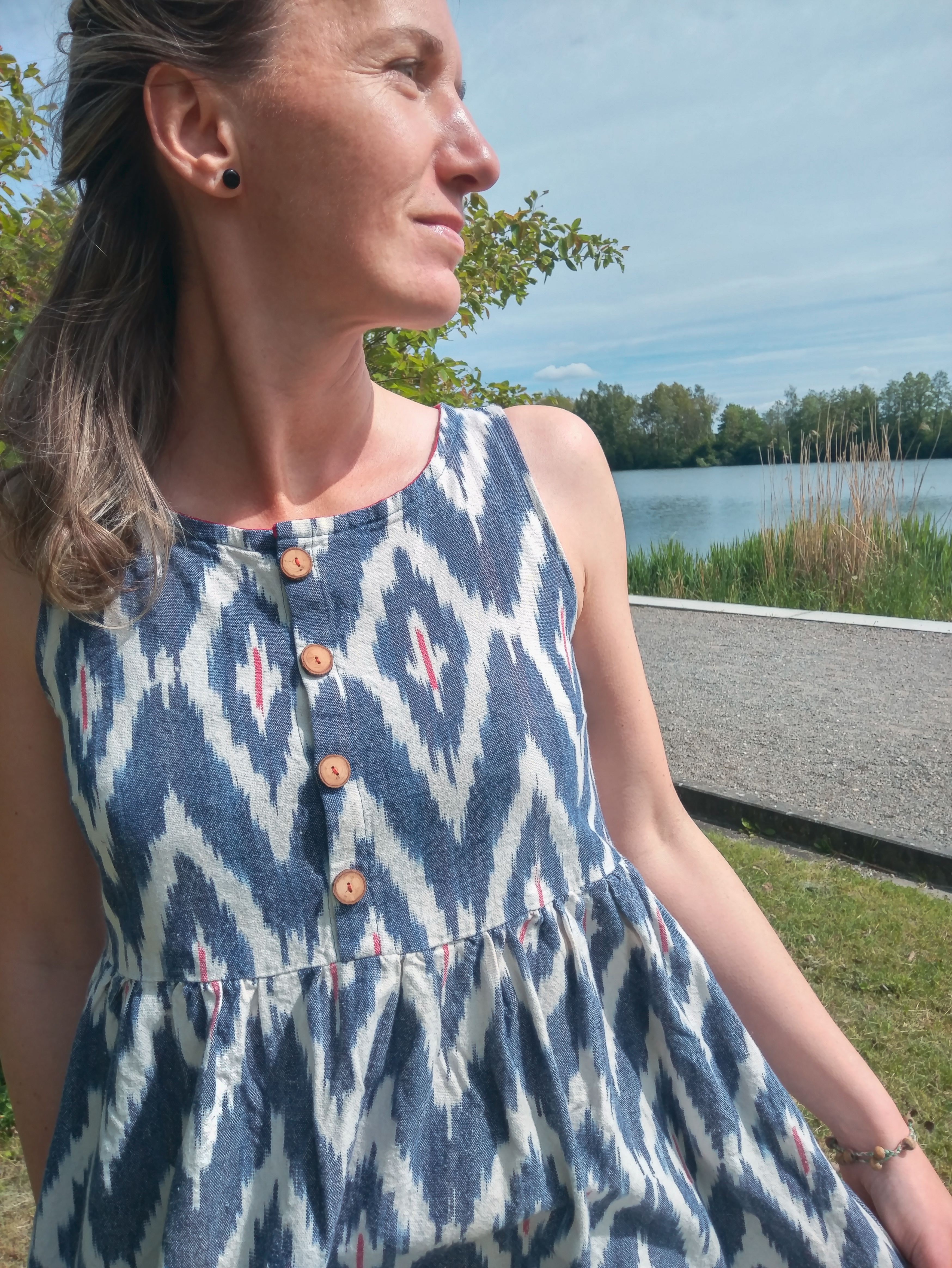 Das Damenkleid LOTTE kommt mit vielen verspielten Details daher die Nähen zu einem Vergnügen machen. Für das Schnittmuster wird nicht viel Stoff benötigt und so lassen sich auch Reststoffe sehr gut aufbrauchen und du erhältst ein einzigartiges Kleid im Patchwork- Style. Das Trägerkleid ist schnell genäht und ein ideales Nähprojekt für einen Abend. Perfekt für alle die sich noch „Auf die Schnelle“ ein ärmelloses Kleid nähen möchten. LOTTE ist vom Schnitt her locker und bequem geschnitten, hier geht es nicht um jeden Zentimeter, sondern sich ein luftiges und verspieltes Sommerkleid zu nähen. Perfekt für den Urlaub am Strand oder See.