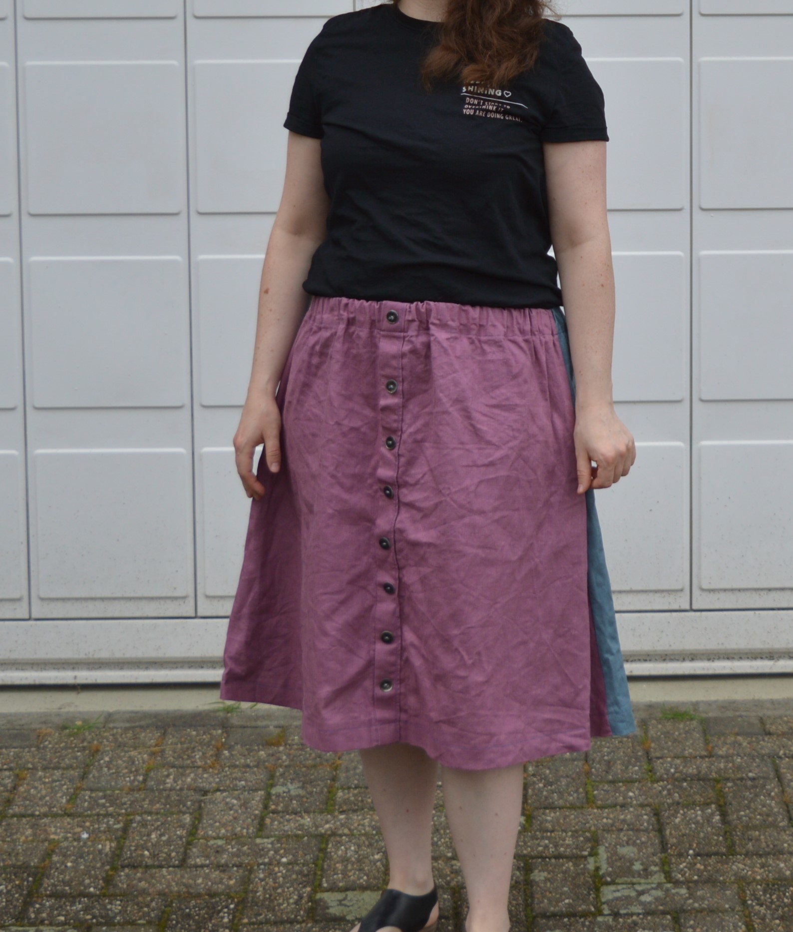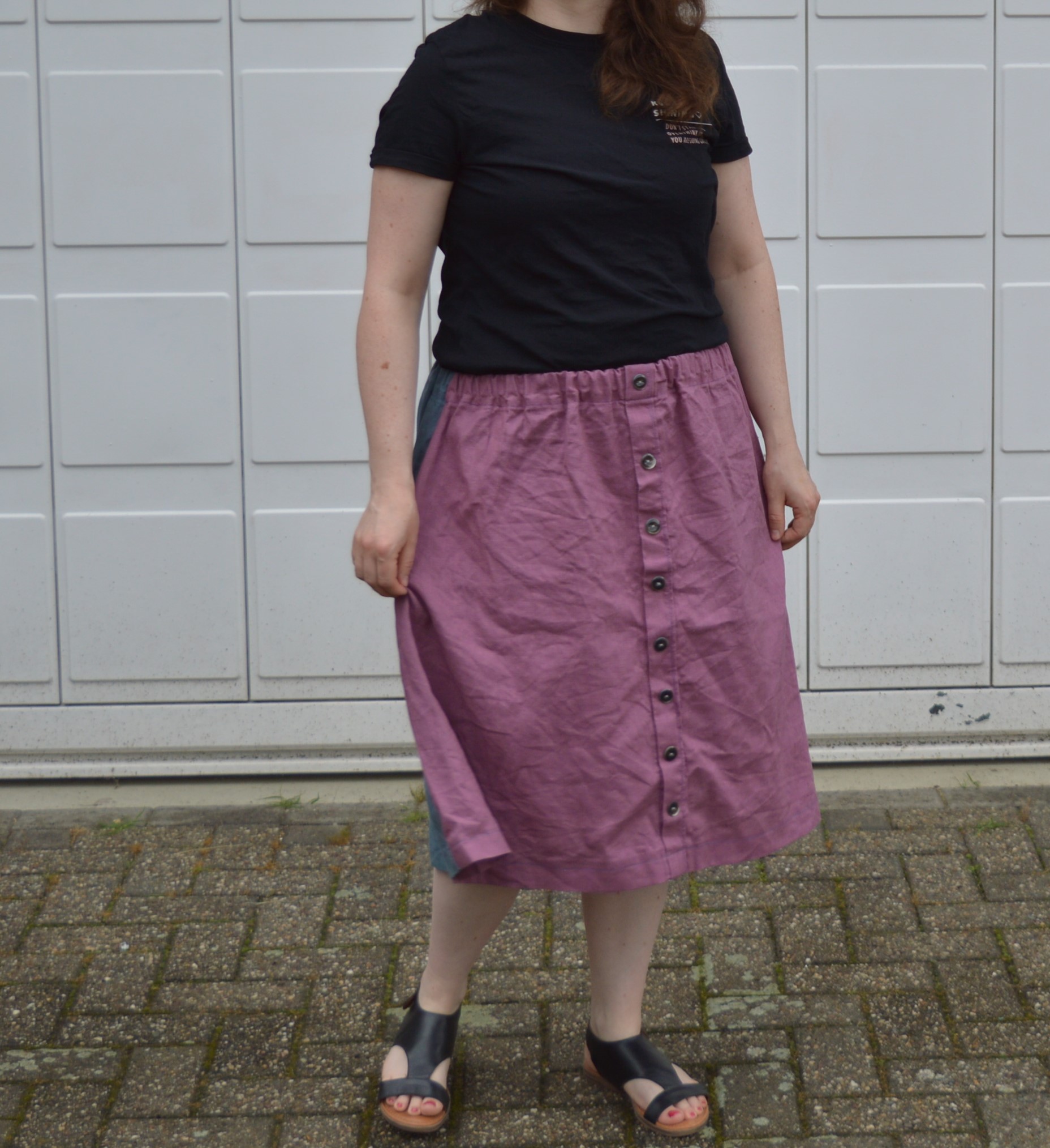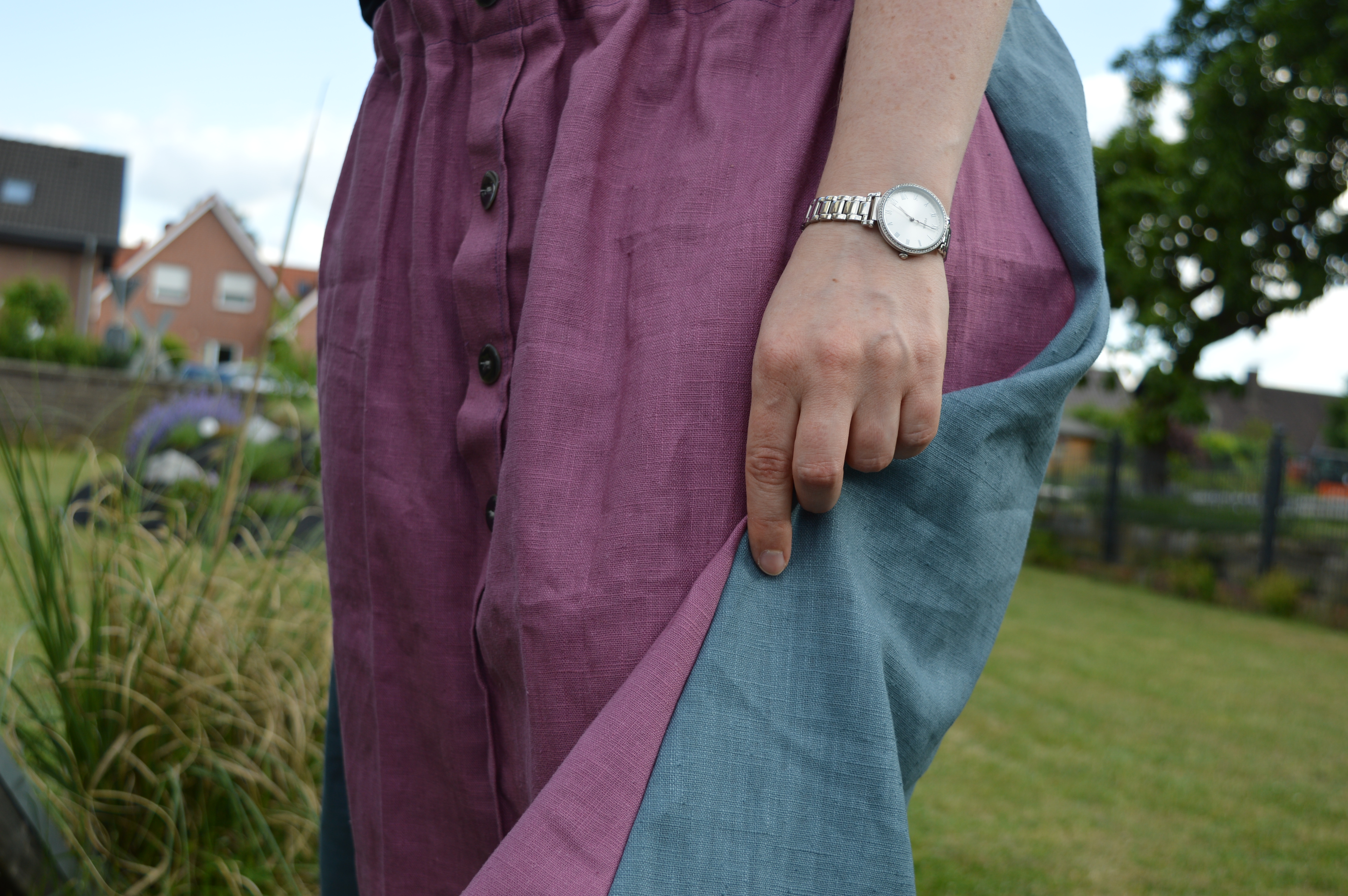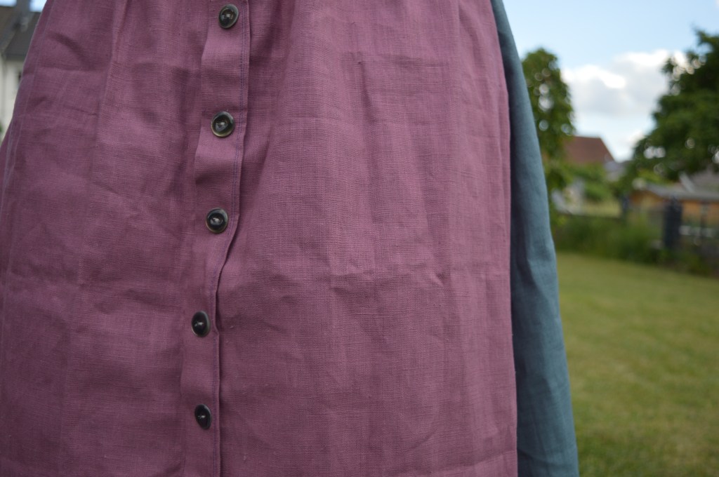 Allerdings stellte mich das Nähen der vorderen Knopfleisten vor ein echtes Hindernis und der Nahtrenner war mein bester Freund. Wer genau hinschaut sieht meinen Fehler jetzt auch noch, aber dafür ist der Rock „Handmade“ und im Sommer sehr angenehm bei heißen Temperaturen.