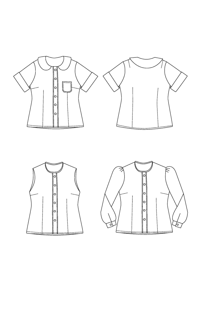 Feminin verspielte Damenbluse mit und ohne Bubikragen. Schnittmuster MAGRET hat viele süße Details die das Kleidungsstück perfekt abrunden und zu etwas ganz besonderem machen. Ob langer Arm mit Manschette, kurzer Arm mit Aufschlag oder ganz ohne Arm, hier findet ihr so viele Möglichkeiten sich eine süße Vintage Bluse zu nähen.